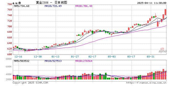 2025年4月11日,早盘收盘,国内期货主力合约涨多跌少,沪金涨超3%,沪锡、豆一涨近3%,苯乙烯(EB)、20号胶涨超2%,沪银、纸浆、PTA涨近2%。跌幅方面,集运欧线跌超4%,焦煤跌近3%,