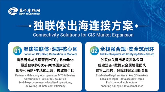 作为全球领先的物联网智能通讯连接服务运营商,翼卡车联网(成立于 2010 年,国家级专精特新 “小巨人” 企业)凭借 15 年物联网连接经验、1500 万 + 台车联设备连接实力,针对俄罗斯及独联体市场推出三大核心连接方案。从汽车主机厂的跨境车联网需求,到 IPC 设备的偏远地区覆盖痛点,再到汽车电子的合规运营诉求,翼卡方案均能精准破解,为出海物联网企业打造高效、稳定的智能连接新体验。
